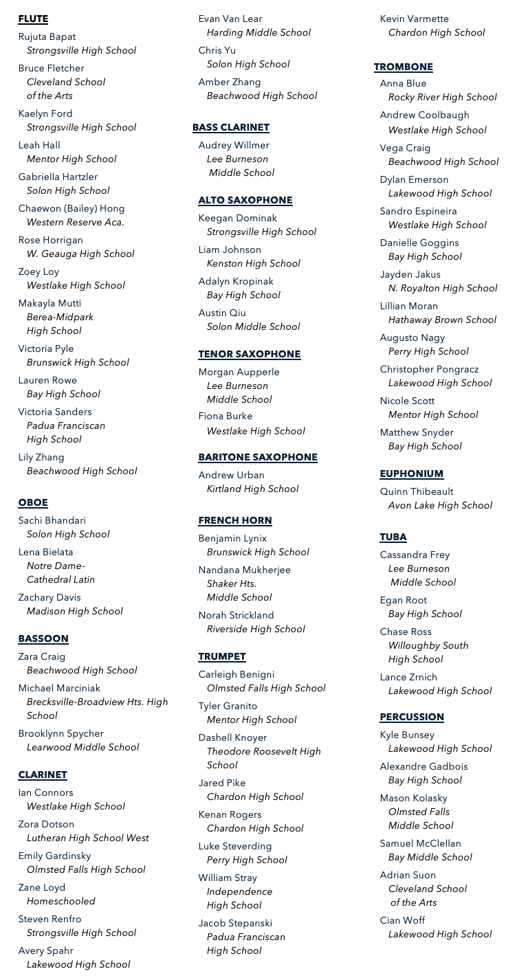 CLEVELAND YOUTH WIND SYMPHONY (CYWS) GROUP II